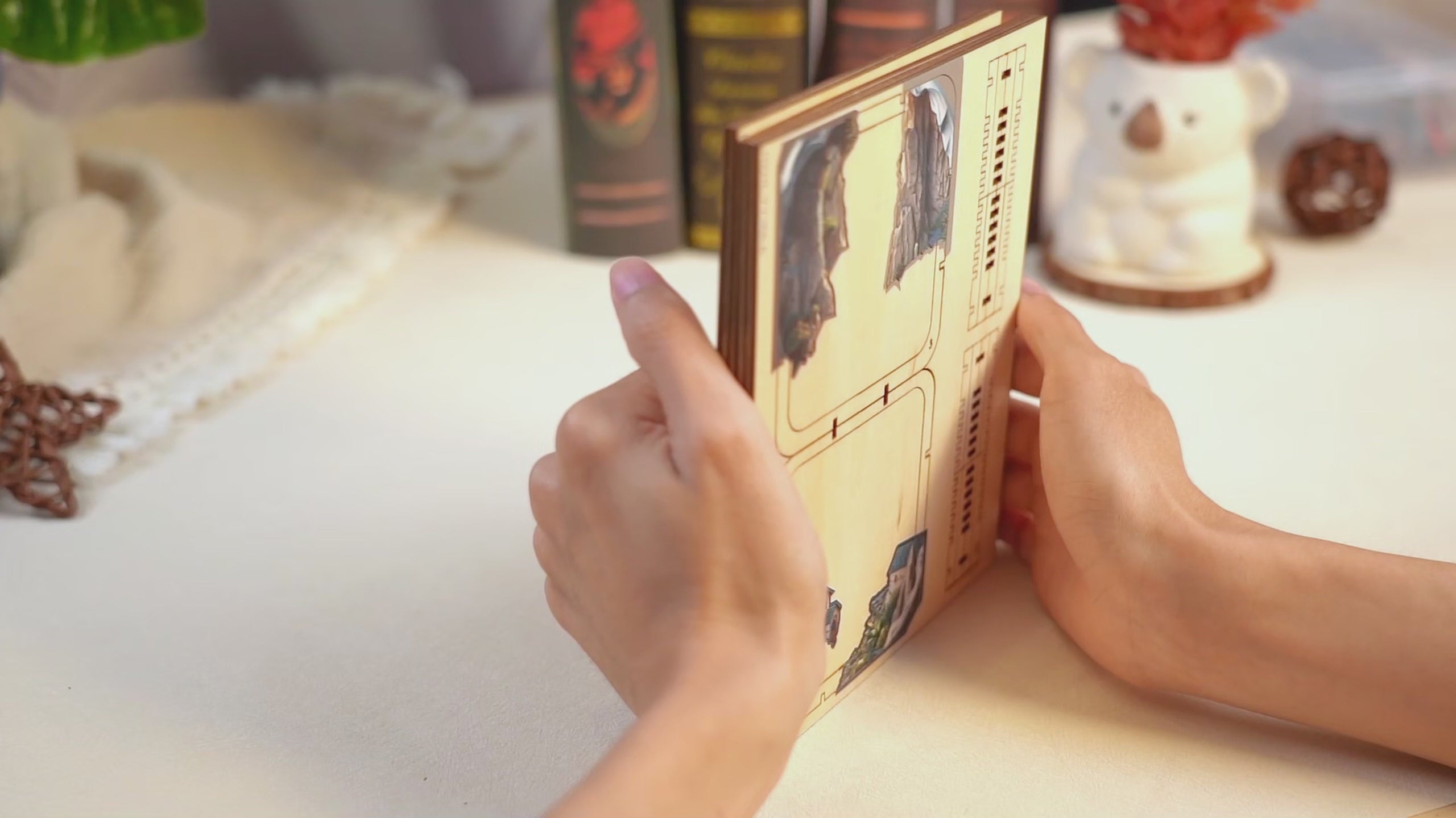 3D wooden puzzle night light featuring a colorful cosmic design with planets and swirling galaxies.